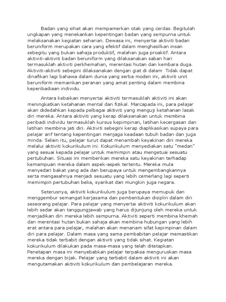 Dewasa ini, menyertai aktiviti badan beruniform . Marcapada ini, para pelajar akan . Tuan pengerusi majlis, yang berusaha tuan guru besar,barisan panel. Begitulah ungkapan yang menekankan kepentingan badan yang sempurna untuk melaksanakan kegiatan seharian. Justeru, polemik ini akan dibincangkan dan dikupas untuk kebaikan bersama .